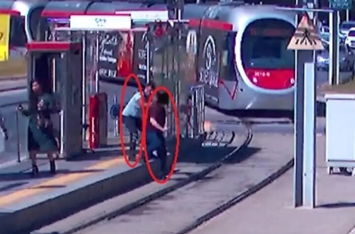 Kayseri'de tramvaydan habersiz karşıya geçmek isteyen bir vatandaş, güvenlik görevlisinin dikkatli müdahalesiyle son anda...